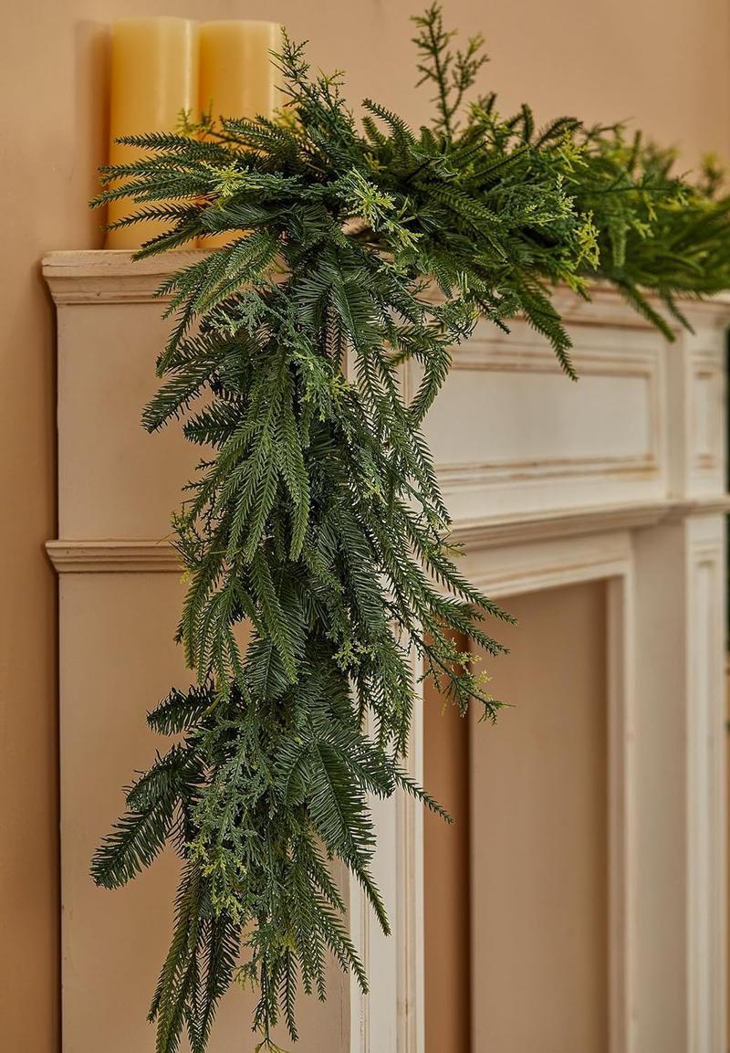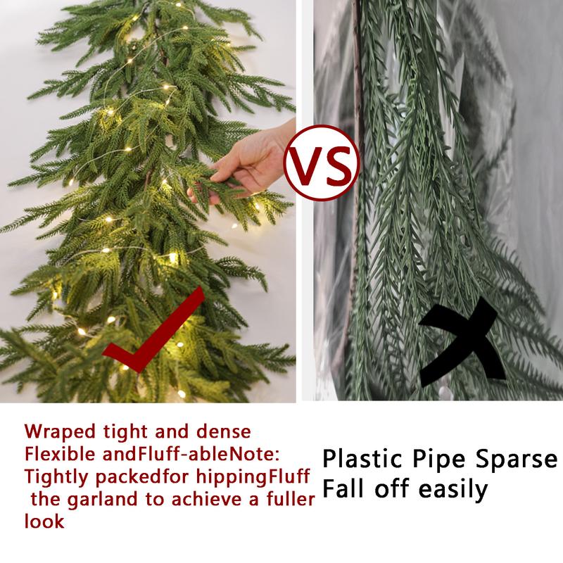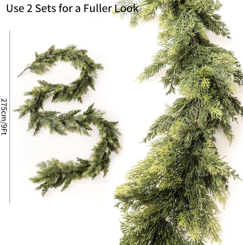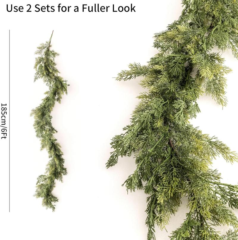 【The Perfect Blend of Nature and Elegance】Our Norfolk Pine garlands not only bring a refreshing and elegant feel but also seamlessly blend into any decor style. Whether it's for festive celebrations or everyday decoration, these garlands add a touch of natural charm to your home. (Some display pictures feature two sets of garlands to achieve the best visual effect. If you desire a fuller and more striking appearance in your decor, we strongly recommend purchasing two sets. This way, you can cover a larger area and create an even more impressive decorative effect.)